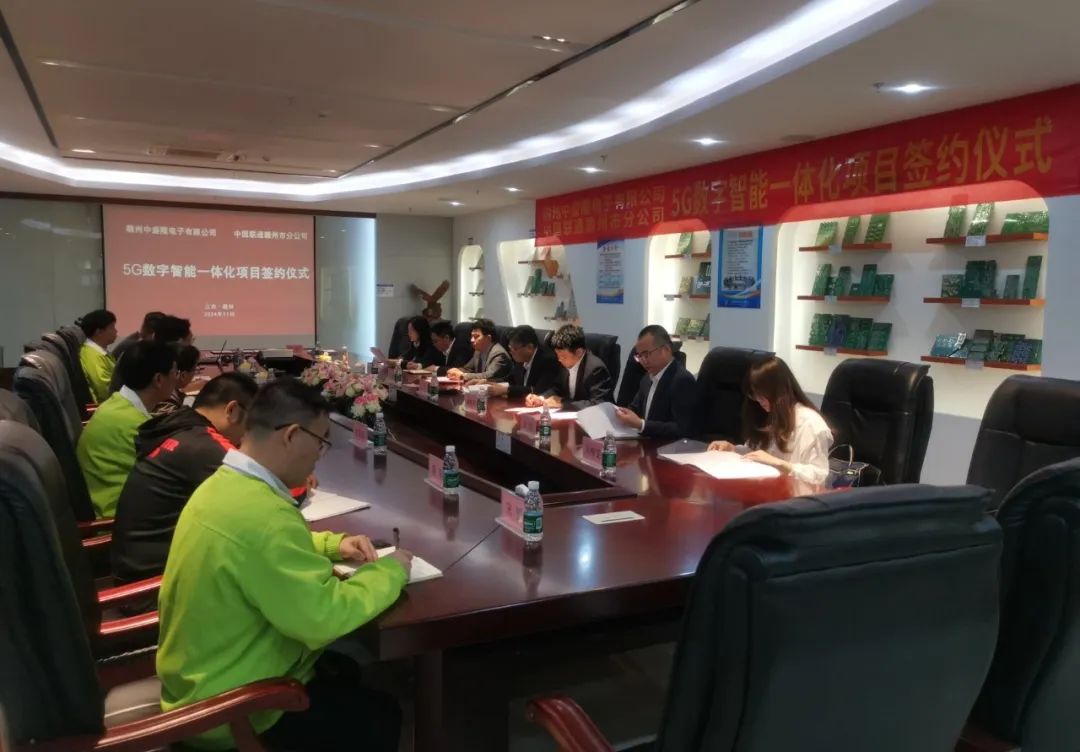 2024年11月1日,贛州中盛隆電子有限公司與中國聯(lián)通贛州市分公司在公司行政會議室舉行5G數(shù)字智能一體化項(xiàng)目現(xiàn)場簽約儀式。